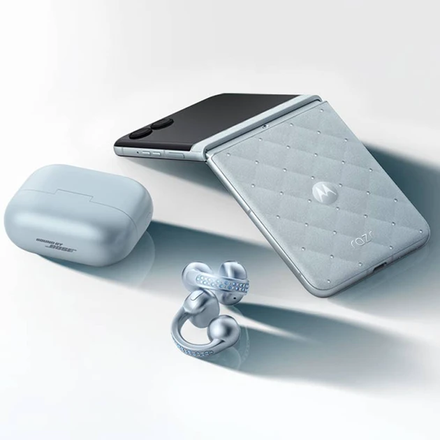 除强大的AI功能外,联想moto razr 60系列秉承经典竖向折叠设计,将科技与艺术美学完美融合。其中,联想moto razr 60 Ultra AI元启版在小折叠产品中首发骁龙8至尊版芯片,同时配备一块4英寸实用大外屏和一块7英寸高刷新率内屏,创新的钛金属铰链设计支持多角度自由悬停,稳定控制折痕。在工艺材质上,全系均由Pantone独家定制潮流配色,融合了奢华触感的Alcantara绒面材质、温润自然的天然原木纹理以及亲肤舒适的柔肤纳米皮质,呈现出科技产品的质感美学。尤为注意的是,联想moto razr 60冰钻限定版礼盒将于8月7日正式发布,作为首款珠宝小折叠,以冰蓝色为主调,于机身转轴及后盖处精心镶嵌璀璨的冰钻,尽显尊贵格调。此外,该礼盒还有一款联想moto buds Clip冰钻限定版耳机,同样冰蓝机身,闪耀冰钻镶嵌,既有BOSE联合调音的硬实力,也可作为时尚耳饰搭配全身。