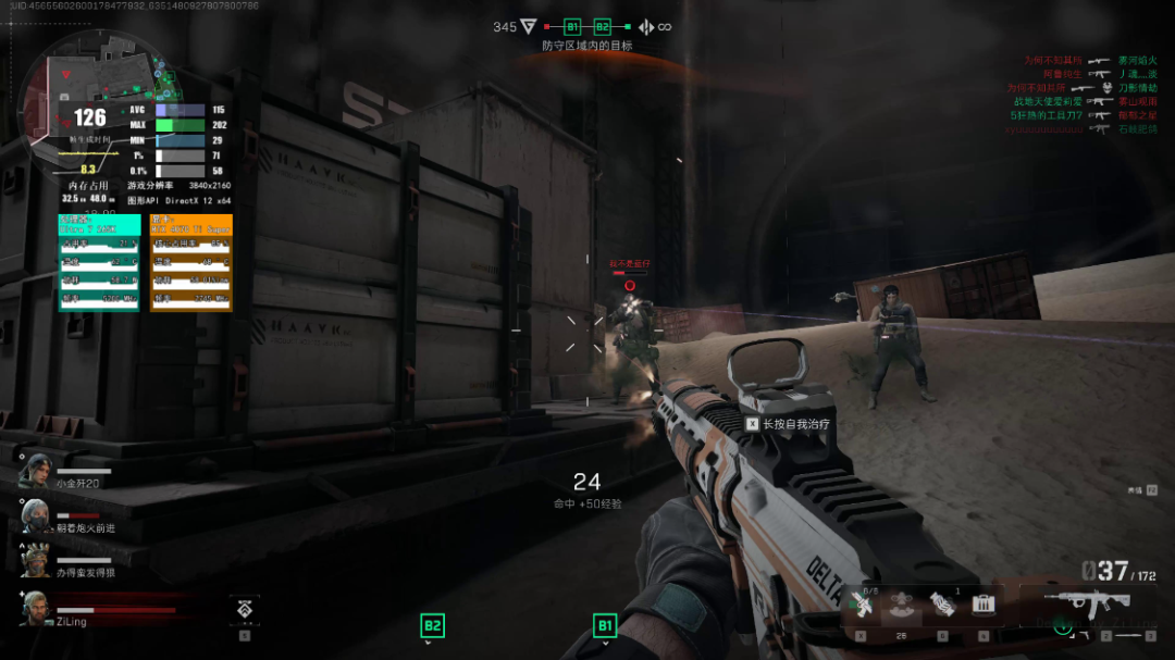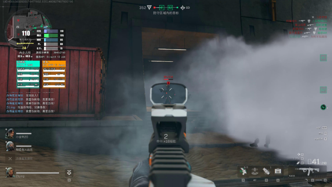 《三角洲行动》游戏中,极致画质,开启DLSS并设为性能优先,4K分辨率下,在贯穿地图中,游戏实际帧数为110FPS左右,大部分时间都保持在130FPS左右;
