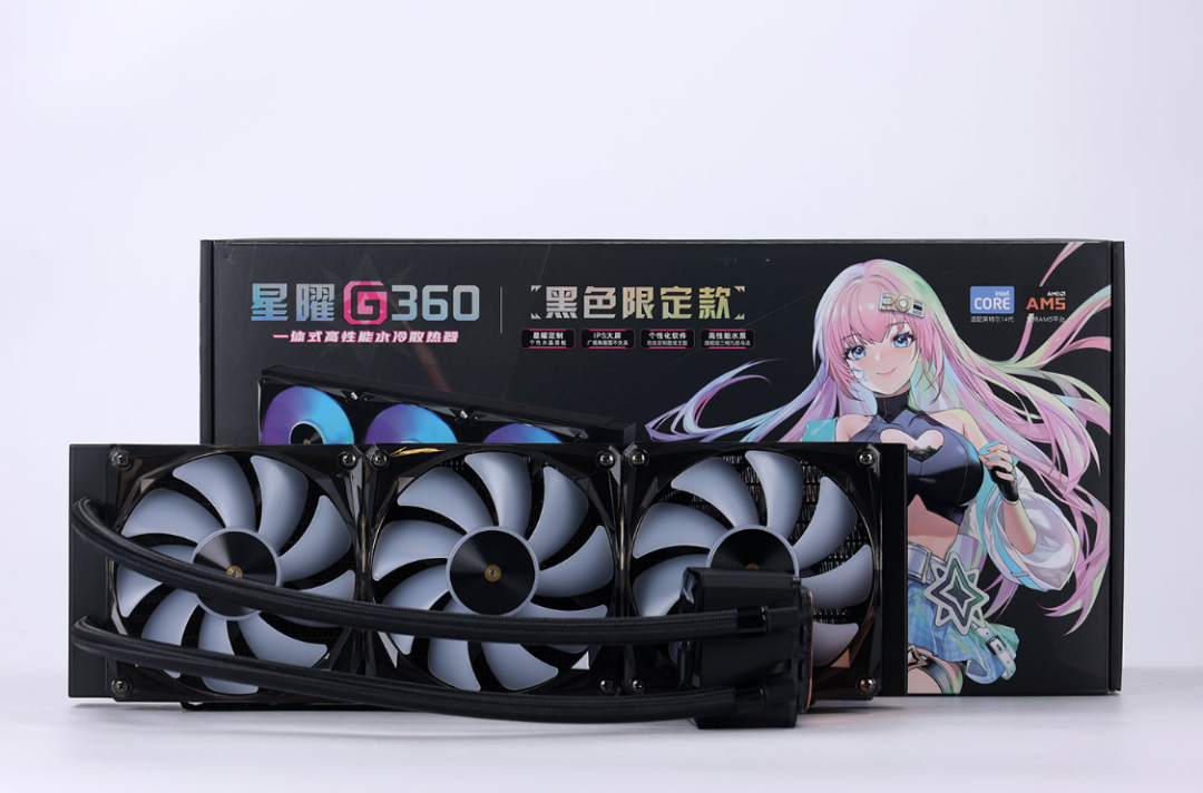 新一代酷睿散热压力对比上代优化了不少,但带K的U7还是值得被重视。今儿装机选择的是影驰星曜G360黑色限定款一体式水冷。全黑配色,低调但不失质感。冷头内置的2.4寸24位IPS全视角屏幕,可以通过水冷配套的软件将图片/GIF动画/MP4格式视频在冷头的屏幕上展示。性能方面采用三相九极高速马达方案,能够提供3000R澎湃动力。同时搭配改进款仿生型叶轮,高密度低水阻S型散热鳍片更大的散热面积,确保实现旗舰级解热性能。