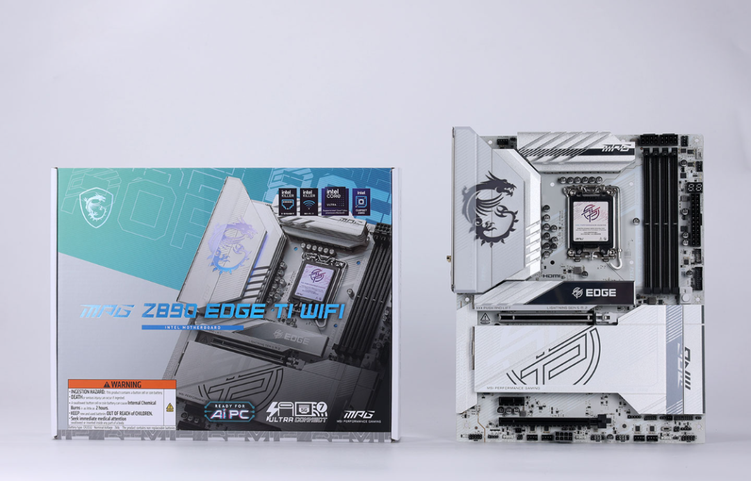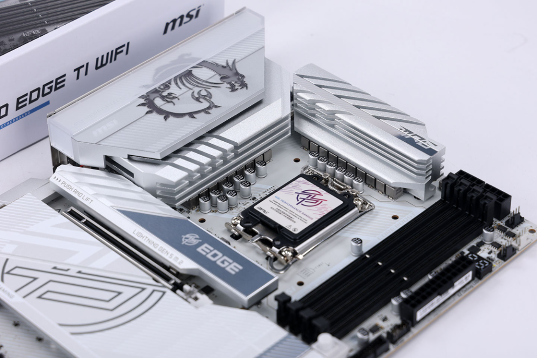 伴随英特尔Ultra系列发布的还有全新的Z890主板,御三家再加上二三线品牌发布了几十款各种段位的Z890主板,朋友一眼相中的是这款全白的微星MPG Z890 EDGE Ti WIFI主板(刀锋钛)。