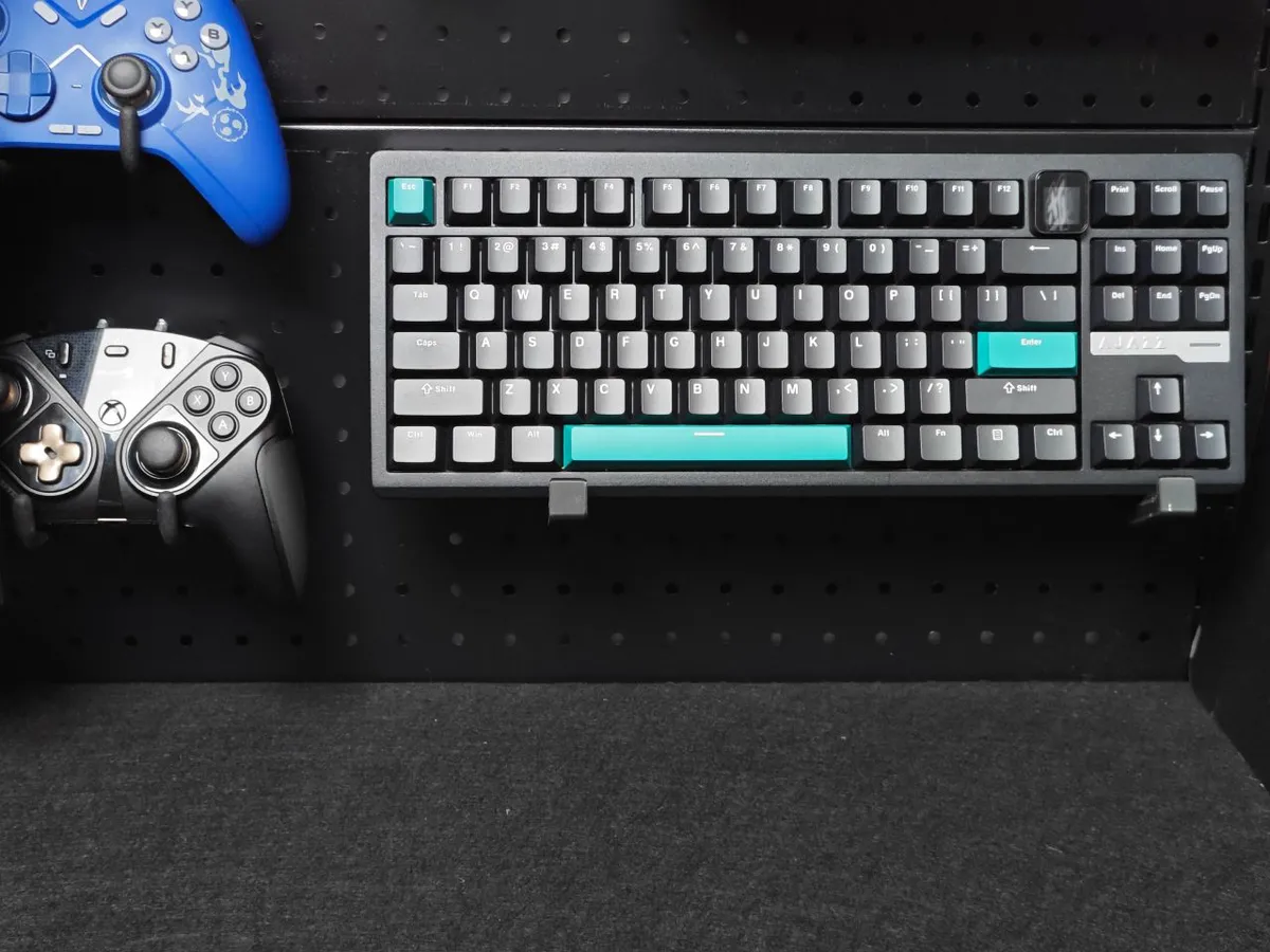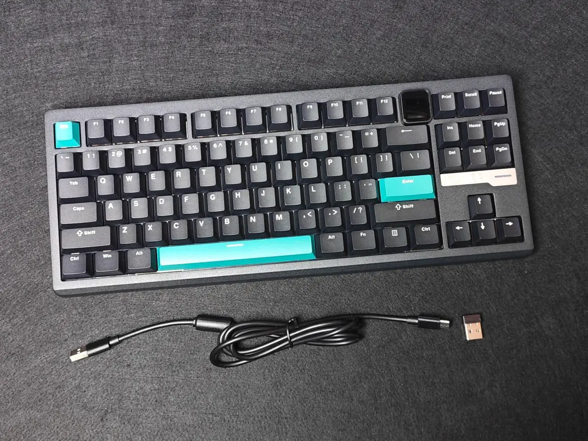 键盘的原生键帽为PBT材质的双色注塑键帽,个人拿到的这个版本是比较朴素的,黑+青的拼色键帽属于耐看类型。其他版本搭载的键帽会好看很多,还有近期非常流行的等高线键帽。不过可惜的是,本人并未拿到这个版本。