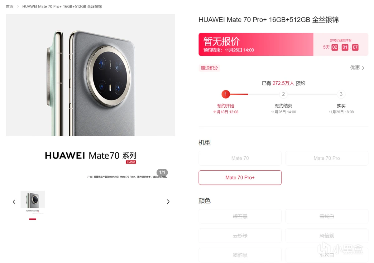 预约界面显示,预约结束时间为11月26日14:00,也就是发布会前半个小时。购买时间为11月26日18:00,这就表明mate70系列发布会结束后当天就开售,并不像其他手机一样,发布后要等上几天才正式开售,可见华为mate70系列这次准备很充分,备货也应该不少吧。不过从预约人数看,mate70系列首销估计还是一机难求,想买还得拼手速。