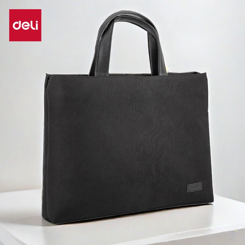 得力63752公文包采用了经典的黑色设计,简约大方,适合商务场合使用。手提袋采用涤纶材质制作,手感柔软,提拎舒适,整体给人一种专业、精致的感觉。