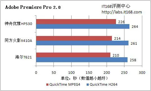 Adobe Premiere Pro 2.0是一款知名的视频编辑软件,功能丰富而且强大,我们主要利用这款软件进行视频编码输出。视频源为51.8MB 1080P视频文件,文件编码采用MPEG2。视频压缩输出格式为:QuickTime H264、QuickTime MPEG4。记录操作时间(单位:秒),时间越短越好。