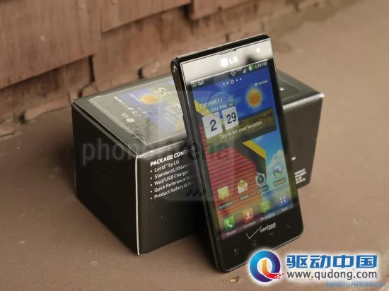 打开包装就能看到LG Lucid躺在包装盒里,我们也得以看到这款手机的真身。