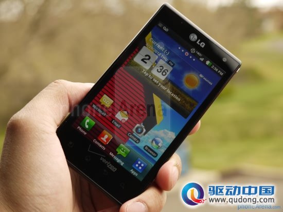 LG Lucid采用4英寸的IPS-LCD显示屏,支持多点触控,屏幕分辨率为800×480像素。该机运行主流的双核1.2GHz处理器,搭载Android 2.3操作系统,拥有1GB RAM+8GB ROM内存组合,从这些配置来看,这款手机的运行应该极为流畅。