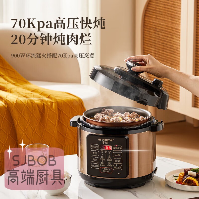 如果你正在寻找一款高性能的电压力锅,那么SJBOB的304不锈钢6L电高压锅绝对值得你考虑。这款电压力锅拥有70Kpa的压力,使得烹饪时间大大缩短,同时也能保证食物更加软烂,口感更佳。