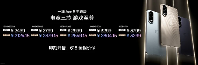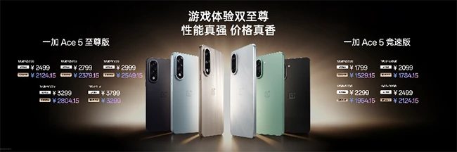 一加 Ace 5 至尊版定价为2499元起,国补后价格2124.15元起;一加 Ace 5 竞速版售价1799元起,国补后1529.15 元起。