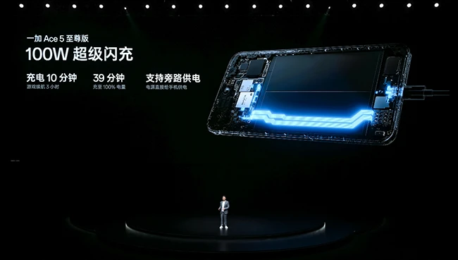 一加 Ace 5 至尊版还配备 100W 超级闪充,仅需充电 10 分钟,即可畅享满帧游戏 3 小时;39分钟就能充至100%电量,回血迅速,告别电量焦虑。同时,一加 Ace 5 至尊版支持旁路供电功能,电源直充手机,有效减少电池充放电次数,延长电池寿命,并显著缓解游戏时的机身发热情况。