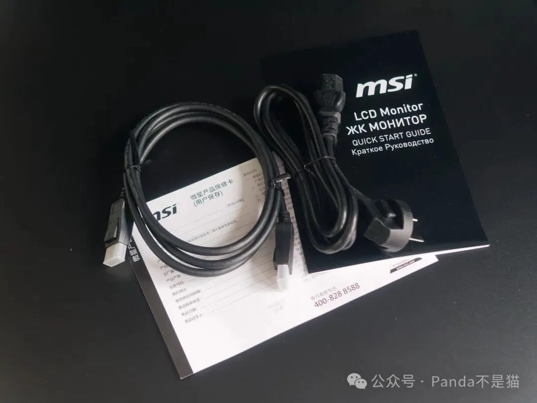 价格已经非常低了,所以微星这次给MAG 275QF 黑刃的配件也仅仅是够用,用户手册、保修卡、电源线以及DP线。作为电竞入门款显示器,功率要求并不高,所以没有砖头一样的适配器,这一点其实我还是蛮在乎的,真不喜欢拖一个大适配器的电源。