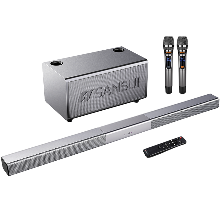 91W回音壁,SANSUI山水这牌子做的真心不错。8英寸80W重低音炮,低音沉得下去,看电影听音乐都带感。内置两个DSP芯片,唱歌声线都给智能微调了,不费嗓子。还有6个喇叭单元,高音透亮,低音饱满。最方便是那个无线麦克风,内置防啸叫IC芯片,唱歌不跑调,也不怕断连。支持USB无损读取,MP3、WAV、APE、FLAC格式都能放,音质没得挑。遥控器一按,电影、K歌、音乐模式随便切,家里聚会用正合适。接口也全,电视、手机都能连,方便得很。