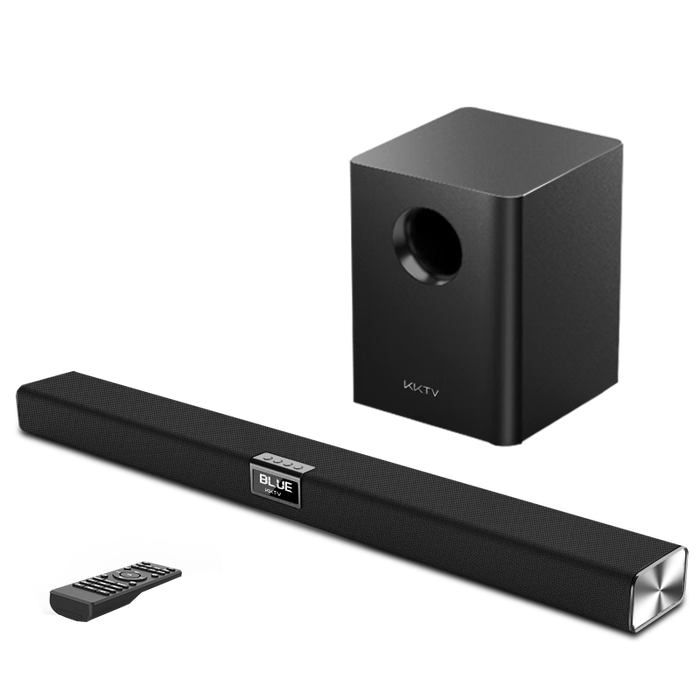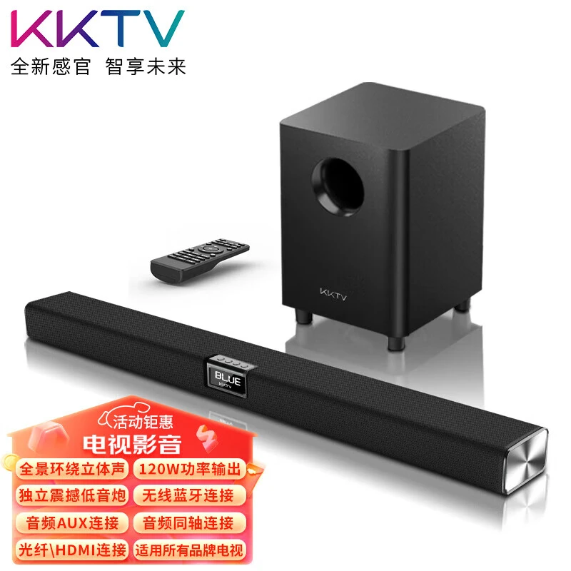 KKTVKY-YX619回音壁,以其120W大功率和独立的高中低音扬声器,重塑家庭影院音效体验。蓝牙5.3技术,确保了连接的快速与稳定,优于蓝牙5.0的传输速度和信号稳定性。60W额定功率,保障音质纯正,不失真,远超非60W功率的音响。其独立重低音炮,采用下沉式设计,带来深沈且干净有力的低音体验,这是非独立低音炮难以企及的。