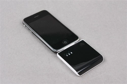 为了测试,厂商专门提供了一台iPhone供我们使用。首先将iPhone插入充电后备中,充电后备的接口与iPhone机身充电接口紧密结合,加上充电后备的固定,手机是轻易不会与充电后备脱离的。安装完成之后,将其拿在手中,重量增加,不过对于男用户来说并没有影响,柔弱的女生恐怕会略显累赘吧。不过女生平时放在包里,当做充电器来说还是不错的。