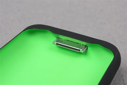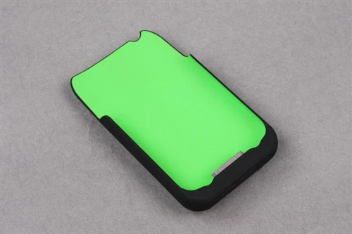 打开包装,塑料纸盒内便是充电后备。充电后备的内部采用绿色塑胶喷涂工艺,颜色鲜艳醒目,外部也采用了塑胶喷涂工艺,手感较好,防滑耐磨。但观察细节部分,比如接合处,这里的工艺有待改善。就外观来说,充电后备尺寸合理,外观精致,细节部分还需提高。
