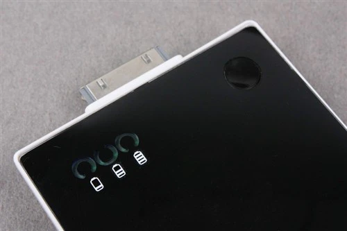 电池组的外壳采用了黑色和白色的烤漆工艺,看上去非常协调,手感也很不错,不过容易沾染指纹和划伤。做工方面,前后外壳衔接紧凑,工艺精湛。黑色一面有电量显示灯,轻按按钮,直观的电量显示一目了然。充电接口不仅支持iPhone各代机型,而且支持苹果的所有音乐播放器。一块电池组多种用途,方便又实惠。