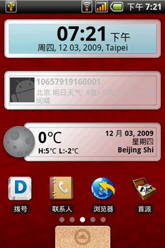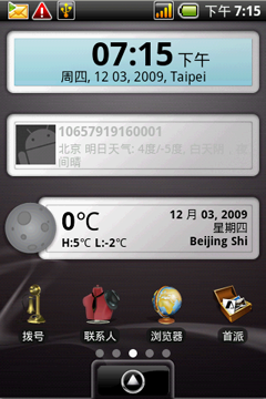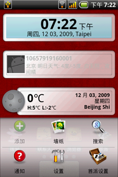 首派A60也像所有的Android系统手机那样,支持桌面上显示多种内容性和辅助性插件,上方的截图就是该机主界面所能够显示的内容的缩影。