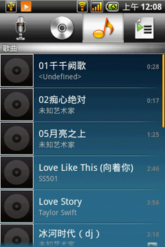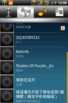 首派A60还是一款全能的娱乐手机,该机内置了单独的音乐播放器,通过选项卡式的管理方式能够很方便的切换音乐的各项参数,包括唱片、演唱者、播放列表等等相关设置。