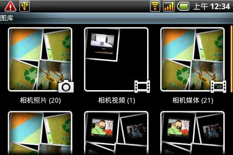 图片等多媒体文件浏览也是A60的特色之一,多种图片/视频排列方式提供给用户选择,纵向屏幕状态下,用户可以选择横向四张图片排列或者五张图片排列,充分利用屏幕空间。用户还可以在手机上完成图片的剪裁处理,方便后期编辑。如果借助第三方软件,这些多媒体功能会更加丰富,这也是Android系统的开放性优势体现。