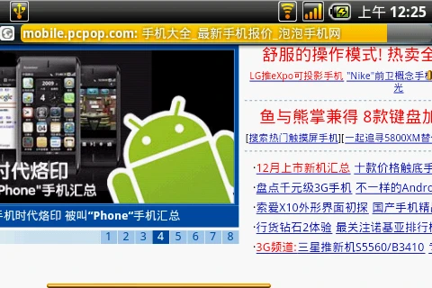 该机支持HTML网页的原版显示,手机端显示的网页同电脑端完全一样,而超过iPhone的则是,该机支持网页上Flash效果显示,而iPhone则不具有同样的功能。该机的窗口切换支持预览模式切换,非常方便。