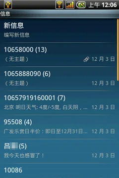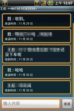短信页面的显示方式和排列方式也经过了首派的细节更改,虽然同样支持聊天室显示方式,但首派A60为每个对话都加入了单独的显示框,清晰明了。