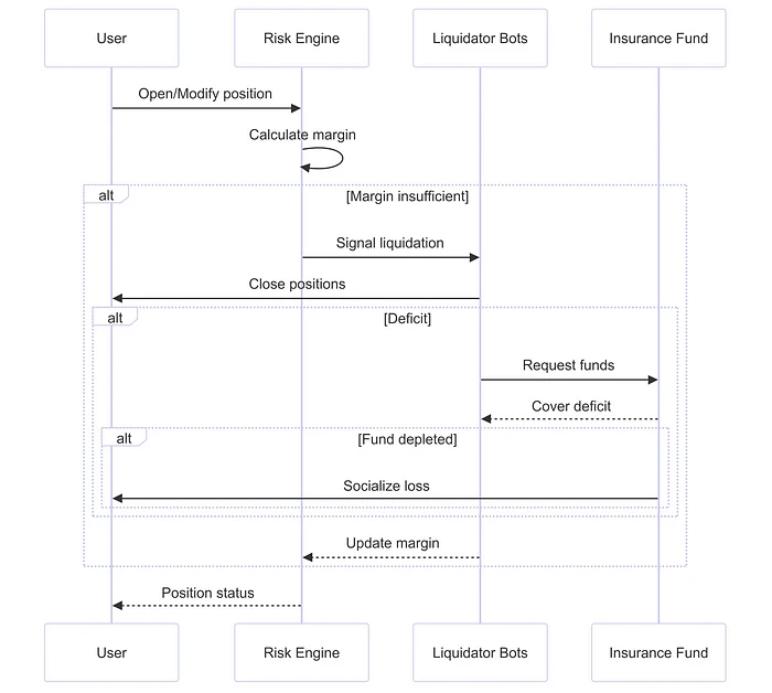 并行运行的风险引擎会持续评估用户的保证金要求(基于抵押品和未平仓头寸),并在需要时启动清算以保护协议的偿付能力。这种复杂的多层设计将链上订单放置与链下订单簿管理无缝融合,从而提供增强的性能和简化的用户体验。下图说明了此用户流程。