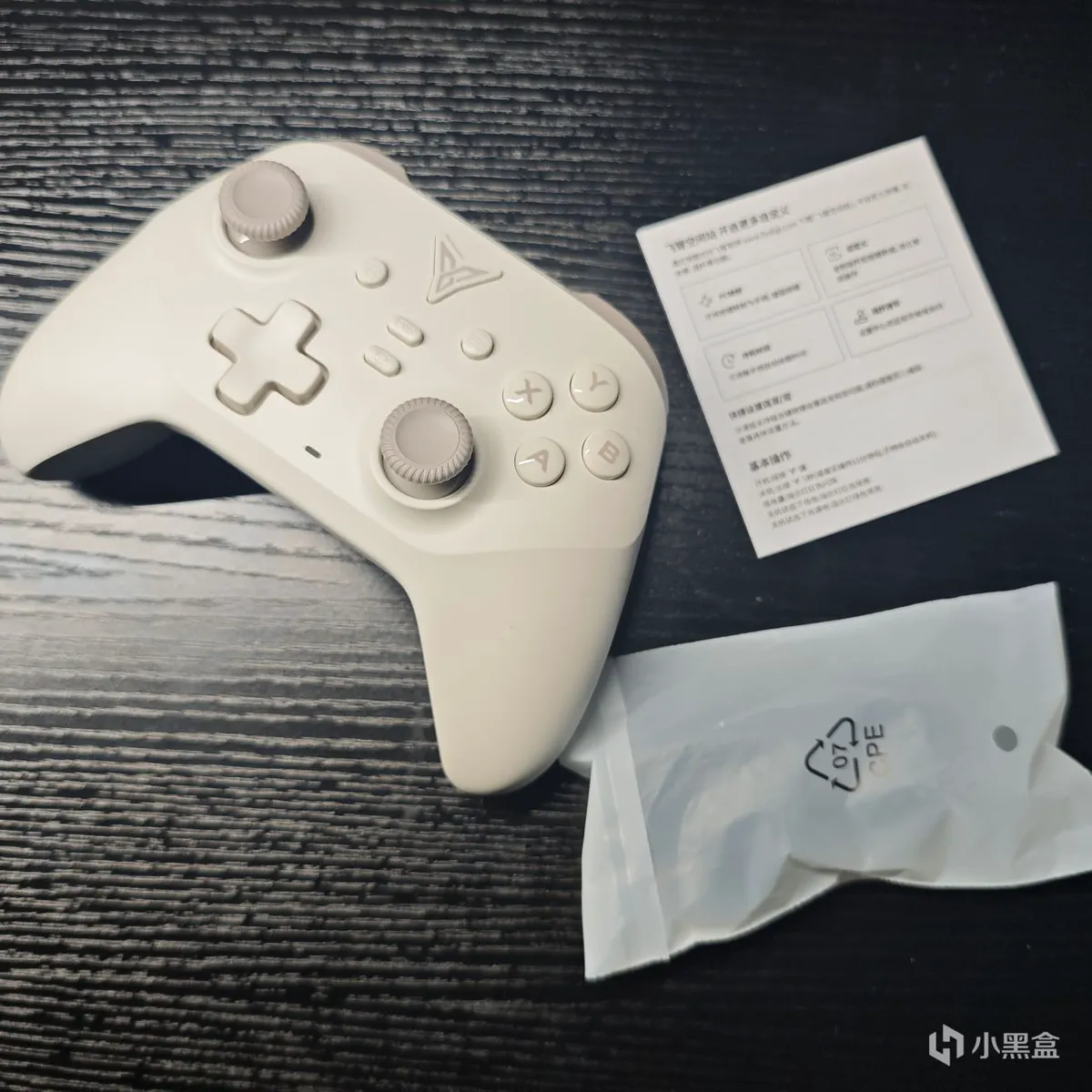 手柄尺寸为154*107*67mm,适合中小手的玩家使用。重量为211g,比较轻。手柄的颜色风格偏向于灰白色,表面非常光滑,没有防滑层。