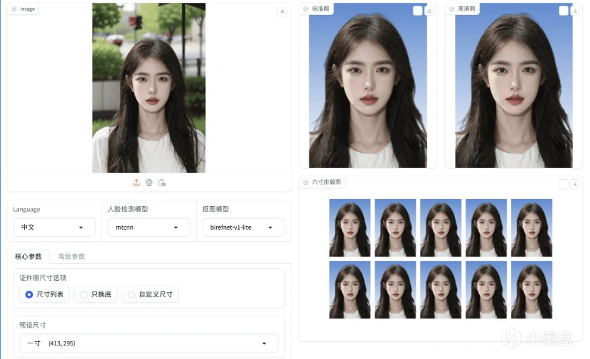 一款免费开源的一键AI证件照制作的软件,采用python开发,可自动实现对拍照或人物照片场景的人脸识别定位、抠图、背景替换从而确保符合证件照标准,涵盖(大小)一二、五寸、驾驶证、签证等常用尺寸。主要依赖CPU运行,亦支持源码或docker NAS本地部署。