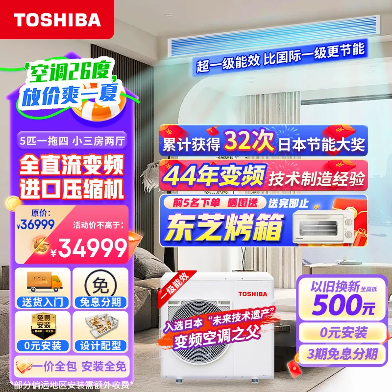 东芝5匹风管机,型号MHP0508HT-CV,采用国标GB21454-2021,APF值高达4.8,远超1级能效标准,省电效果显著。制冷量14000W,制热量15480W,满足大面积空间需求。机身小巧,重量仅75kg,安装灵活。运转音低至45dB,静音舒适。支持-25℃低温制热,-5℃低温制冷,适应极端天气。智能家居控制,操作便捷。个人认为,东芝风管机在节能、舒适度和智能化方面表现出色,是理想的选择。