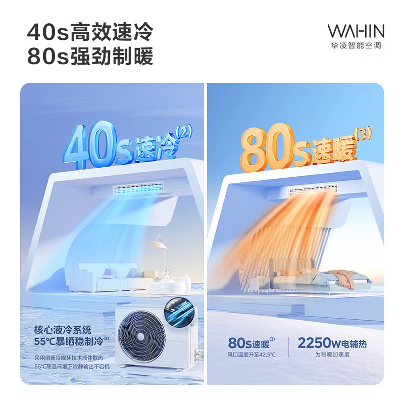 值得一提的是,该机型配备的核心液冷系统,能在极端温度下,从-32℃至60℃,依然保持强劲而稳定的制冷制热效果。如果您位于炎热或严寒地区,或是家中楼层较高、有大面积玻璃窗,此款风管机将尤为适合。