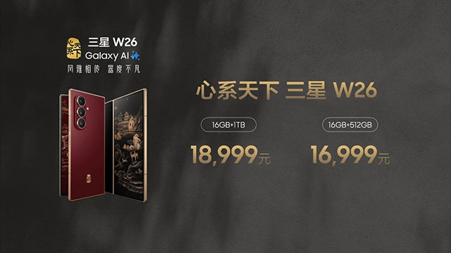 心系天下三星W26 16GB+512GB版本建议零售价16999元,16GB+1TB版本建议零售价18999元。10月11日17点,三星W26将在抖音心系天下旗舰店、三星商城、三星京东自营官方旗舰店、天猫三星官方旗舰店、三星手机苏宁自营旗舰店、抖音三星官网旗舰店等线上渠道、线下授权三星门店以及其他授权门店正式开启预约。10月17日全渠道正式开售。