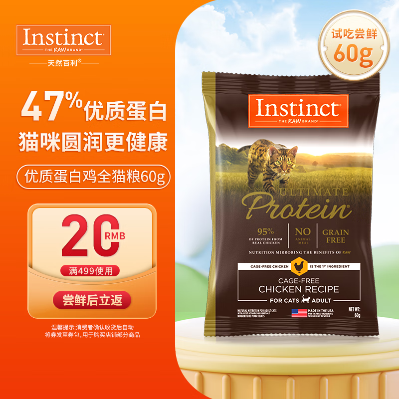 INSTINCT天然百利进口高蛋白鸡肉成猫粮试吃装60g