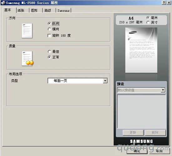在打印机的首选项中可以进行打印质量、页面布局、纸张选择等一些更加高级的设置。