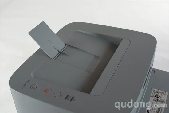 出纸单元则位于打印机的顶部,当托盘打开之后,会与机身形成一个很大角度,可以有效的防止纸张从打印机上脱落。