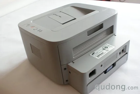 对比了一下三星ML-2581N的进纸与出纸单元,不难发现这台打印机采用了下进上出的走纸方式,最大支持A4尺寸,底部自动进纸盒与中部手动单页进纸器相结合,在切换介质类型的时候不需要拉出纸盒就可以进行操作,这样的操作对于打印类型复杂的办公环境显得尤为适用。