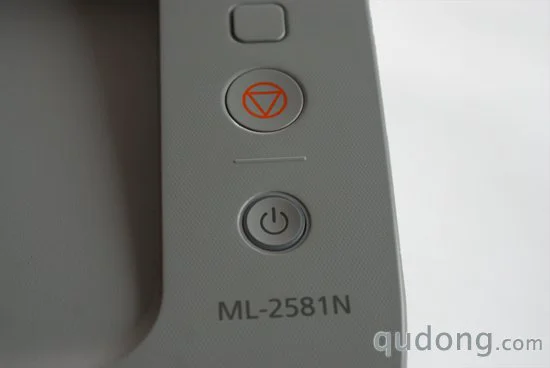 因为打印机的易操作性也用户所需求的一部分,所以三星ML-2581N在操控方面的界面也显得比较简洁,控制面板设置在机身的右侧,由三个按键和两个LED显示灯组成。