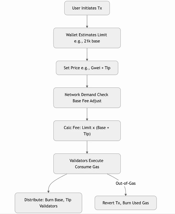 - 执行:验证者使用;退还未使用的费用(例如,以太坊为存储清理退还 50%)。