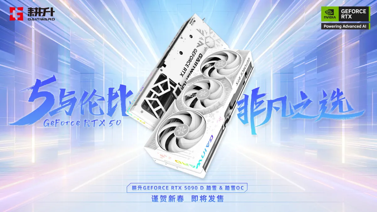 耕升 GeForce RTX 5090 D 踏雪将于北京时间2025年1月30日上线各大电商平台,与大家在春节初始相见。
