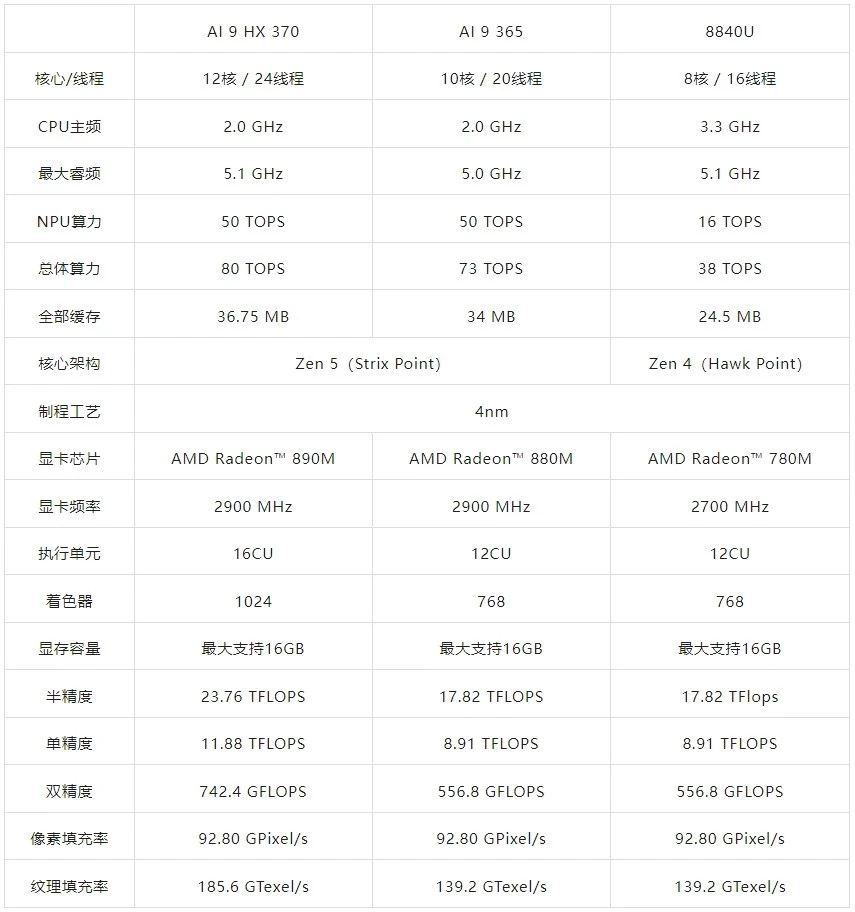 AMD Ryzen™7 8840U(8核/16线程)
