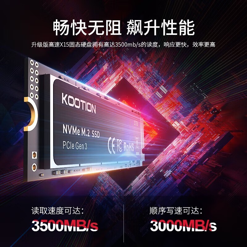 KOOTIONX15固态硬盘,作为一款深耕行业10年的专业存储产品,无疑是提升电脑性能的睿智之选。如果你追求极致的读写速度,X15高达3500MB/s的读取速度和3000MB/s的写入速度,将大幅缩短游戏载入时间,让你快速进入战斗。基于NVMe接口与PCle3.0技术,这款硬盘在性能上实现了飞跃,无论是游戏还是办公,都能轻松应对。