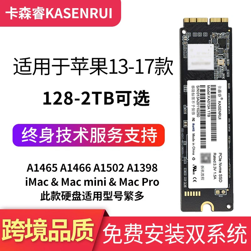 安装过程简单,只需五步即可完成。本店还提供预装双系统和常用软件的服务,省去繁琐操作。总之,卡森睿KAS013A固态硬盘,速度快、性能稳定,是提升苹果电脑性能的理想之选。
