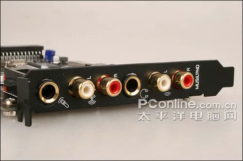 从近期的独立声卡接口我们可以看到很多微妙的变化,一些为定位国内发烧级玩家的声卡上,常见的3.5mm 2声道标准音频接口大多换成了6.25mm的大接口,这是因为各大论坛里挑剔的国内玩家对3.5mm接口颇有微词,接触面积论令3.5mm在国内高端声卡市场上几近无立足之地了。此外,为了适应国内玩家倾向2.0音箱的需求变化,RCA模拟输出自然也是必不可少的。