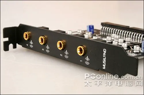 此外,麦克风接口也换成了6.25mm接口,这是为什么呢?除了说明该卡不是为了网聊设计的这一点外,还有个妙处,我们会在下文芯片详解中做出说明。而令人最为诧异的是Line in居然也换成了一对RCA接口!
