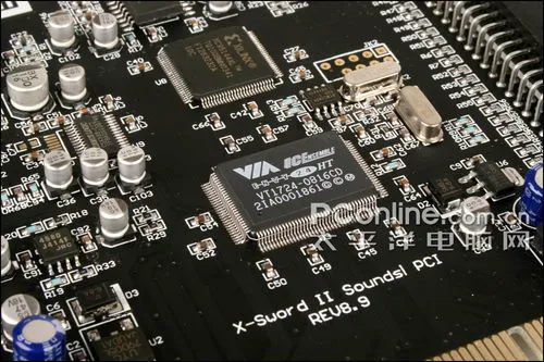 采用VIA主芯片的声卡大多无惧SRC问题,因为实际上它是一颗Audio Controller,也就是一个I/O控制芯片。该声卡采用的是Envy24系列的Envy24 HT VT1724。级别略低于Envy24(无后缀)。VIA对其定义为Hi-end Consumer Soundcard,I/O支持8声道输出以及4声道输入。无论输入输出,采样规格都支持最高至24bit/192kHz。