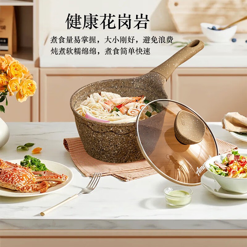 我最喜欢的是它的一体压铸工艺,不仅耐用,还防烫防滑,安全性高。锅体还有微米阵列结构,疏水疏油,炒菜不粘,清洗也方便。套装包含炒锅、煎锅、汤锅、奶锅,满足各种烹饪需求。用Amercook阿米尔麦饭石不粘锅,让厨房生活更美好。