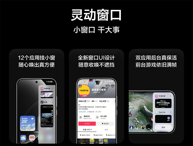 在多任务处理方面,全新的灵动窗口功能支持挂起12个应用,甚至可以后台同时运行两个大型游戏,后台保活长达1小时,并支持息屏挂机不中断,方便“前台手动过任务,后台自动肝材料”的双线操作。全新的窗口UI设计让用户可以随意收唤,既不遮挡前台内容,又能高效处理多个任务,彻底解决用户的等待焦虑。