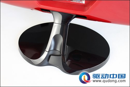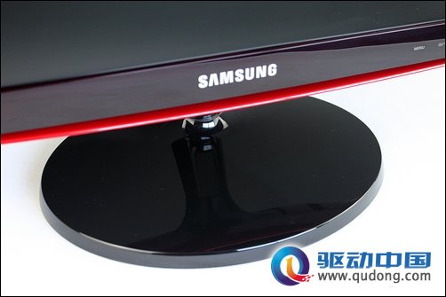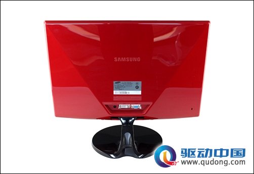 接着我们再来看红韵SA330的背面,通体鲜艳靓丽的红色给我们视觉冲击非常大,同样琉晶式的镜面效果给人以非常强的质感。虽然红韵SA330的后背看起来非常女性化,但是两条非常有力的棱线看起来还是非常的保守,三星没有在红韵的背面设计上采用完全的流线弧面效果,从而也反映了这款显示器其实并不是为女性用户所准备,因为时尚美丽与性别取向显然没有直接关系,当然我们也相信,三星红韵SA330会非常受女生的欢迎。
