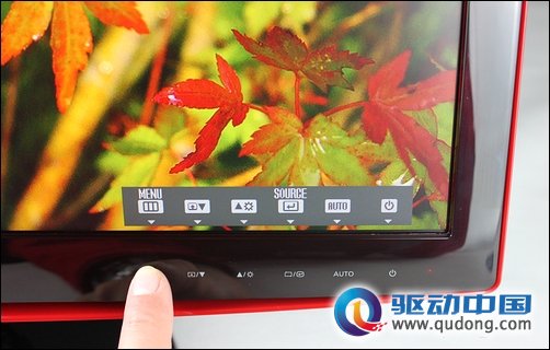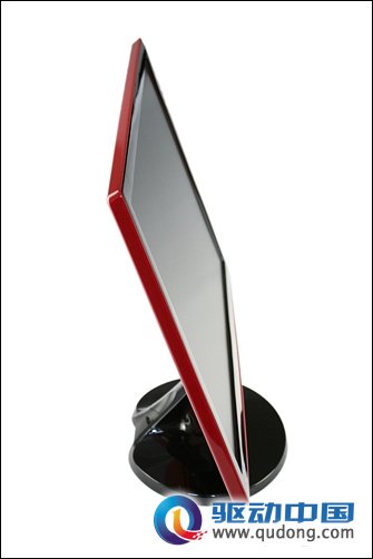 从外观上看,红韵SA330可以用“惊艳”二字来形容,因为我们常见的显示器色调往往不外乎黑色和白色,采用热情激昂的红色作为显示器主色调的产品还非常鲜见,尤其以结合撞色的方式采用沉稳的镜面黑和艳丽的中国红之后,红韵SA330在众多显示器产品中颇有一种鹤立鸡群的感觉。鲜艳的颜色置于显示器的背面既不会刺激使用者感官而影响使用感受,同时还塑造了一种美背感觉,搭配LED的超薄优势,使得红韵SA330看起来非常妖娆。