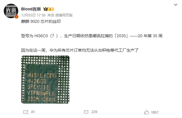 从杨长顺的拆机来看,Mate 70上的麒麟9010芯片丝印也显示“2035”,与之前的麒麟9000S和麒麟9020一样。