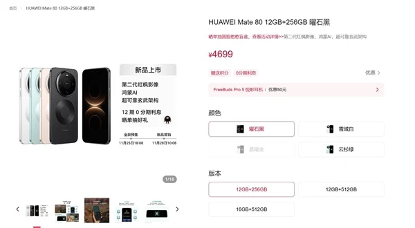 快科技11月27日消息,华为商城显示,华为Mate 80系列将于明天正式开卖,起售价是4699元。
