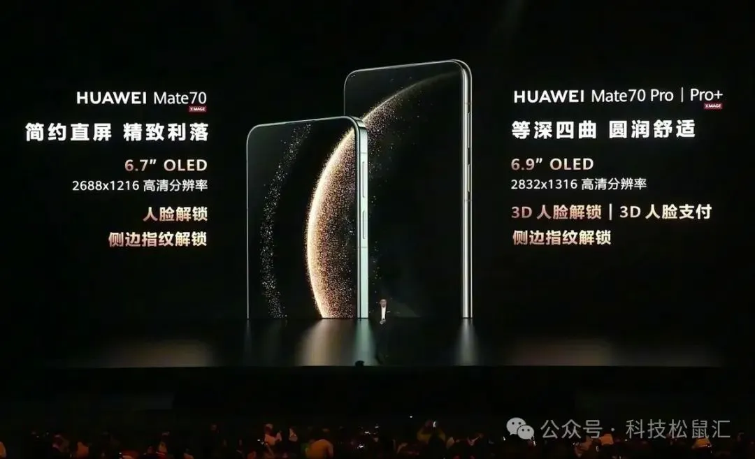 华为mate70采用6.7英寸单挖空直屏,支持侧面指纹+2D人脸识别。华为mate70Pro采用6.9英寸三挖孔等深曲面屏,支持侧面指纹+3D人脸识别。标准版的2D人脸只支持人脸解锁,安全性较低。Pro版的3D人脸支持人脸解锁和人脸支付,3D人脸+侧边指纹,不论是安全性还是体验都完胜。